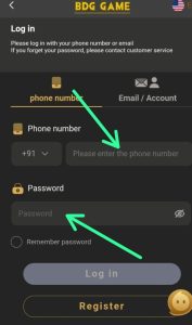 Here, add your mobile number and password. Cross-check the details and click on the BDG game login button.